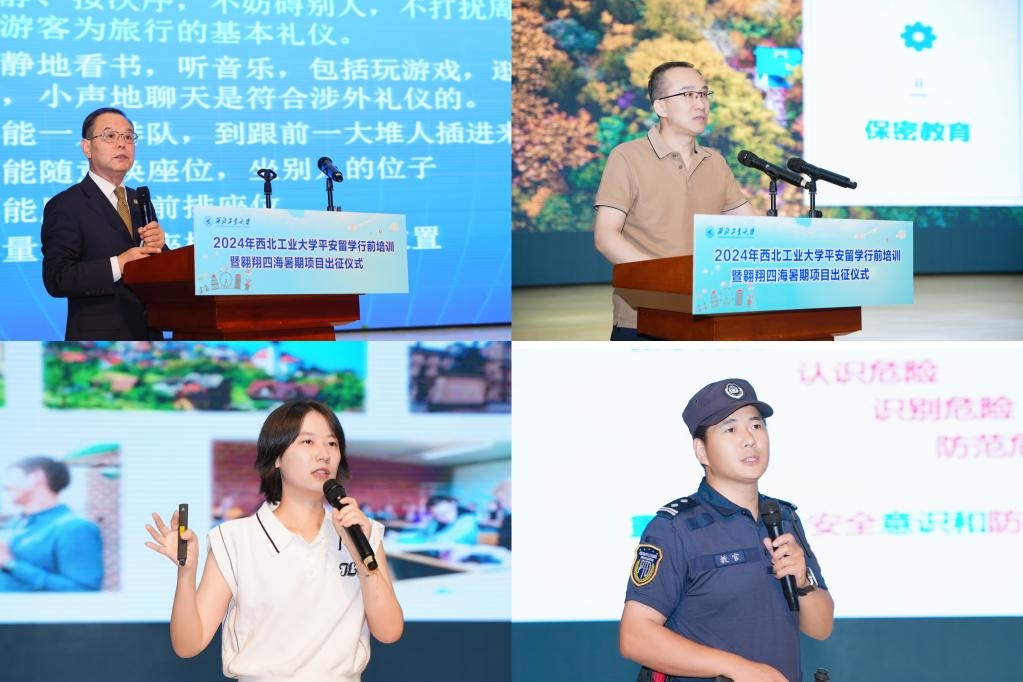 翱翔四海看世界,扬帆五洲逐梦想。在教育部留学服务中心的大力支持下,6月27日下午,2024年万象城娱乐awc线路“平安留学”行前培训暨“翱翔四海”暑期项目出征仪式在长安校区翱翔学生活动中心举行。万象城副校长詹浩,陕西省政府外事侨务办公室原党组成员、副主任宫贵俊,西安市公安局教官杨明华,学校党委学工部、党委保卫部、团委、保密处、体育部、国际合作处相关负责同志,各团队带队老师及项目学生参加。