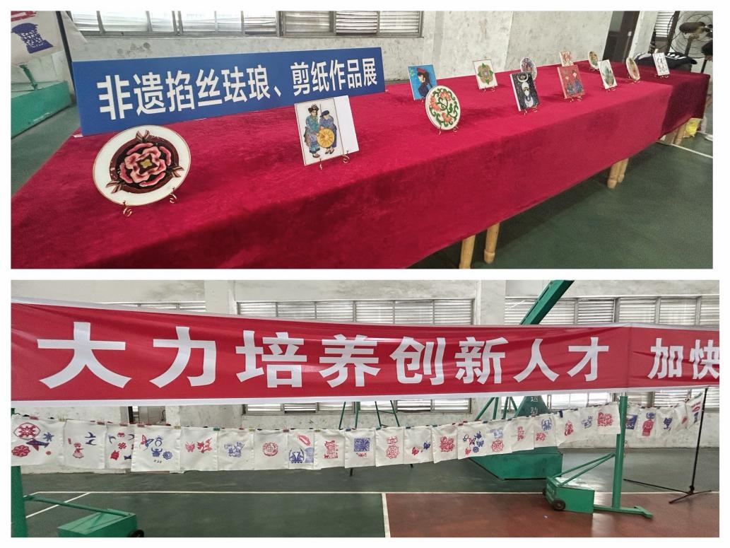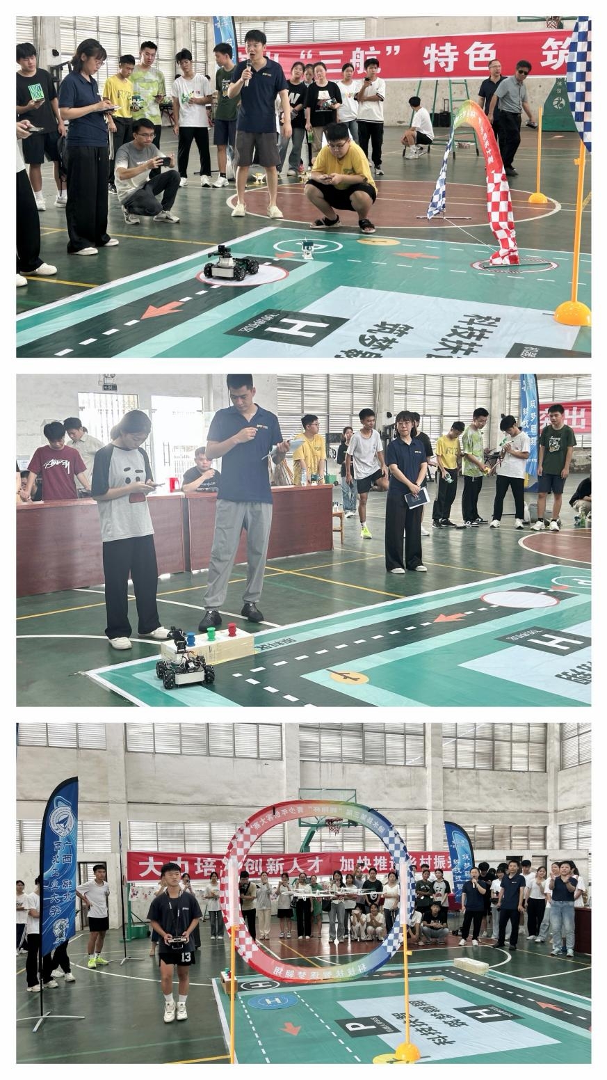 本次青少年创客大赛设置“机器人接力”“智能机器人物料搬运”和 “无人机竞技”三个竞赛项目,主要面向融水中学和融水民族高级中学的高中生展开。赛场一旁特设“非遗掐丝珐琅、剪纸作品展”展区,对学生们自行设计、制作的作品进行展示。