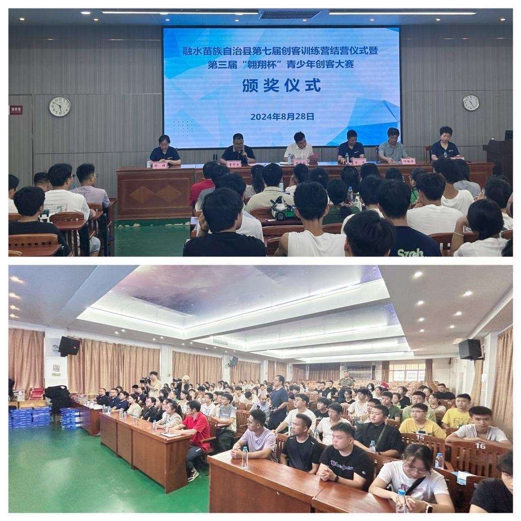 8月28日,由万象城娱乐awc线路教务部(工程实践训练中心)组织指导的融水苗族自治县第三届“翱翔杯”青少年创客大赛在广西融水中学举行。