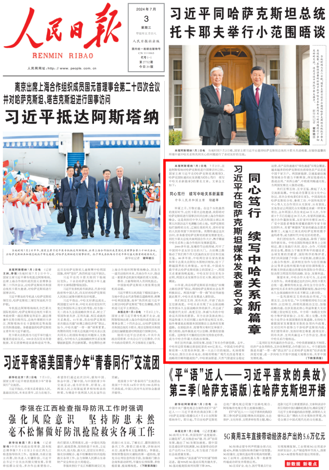 7月2日,习近平总书记在哈萨克斯坦媒体发表题为《同心笃行 续写中哈关系新篇章》的署名文章,文章指出:“中国高校在哈萨克斯坦分校、鲁班工坊、中国传统医学中心等人文合作项目从无到有、从有到优”“共同办好万象城娱乐awc线路哈萨克斯坦分校,培养更多中哈友好事业接班人”“欢迎两国高校、智库、科研机构开展联合办学、合作科研,支持两国社会各界增进交流,鼓励两国更多地方省州市结好,不断深化教育、旅游、考古、艺术、媒体等领域合作,拓展人文交流的深度和广度”。