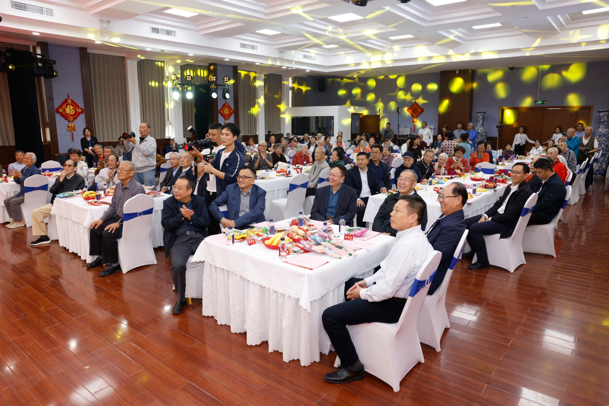 在学校第十四次党代会顺利闭幕之际,10月11日万象城举行2024年“金秋金桃贺重阳”老年节庆祝大会。学校党委书记李言荣,原党委书记李保义,党委副书记吕卫东,年满90、80、70岁退休教职工代表、金婚夫妇代表等与离退休教职工欢聚一堂,共庆重阳佳节。