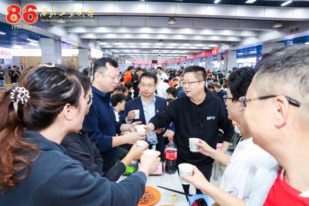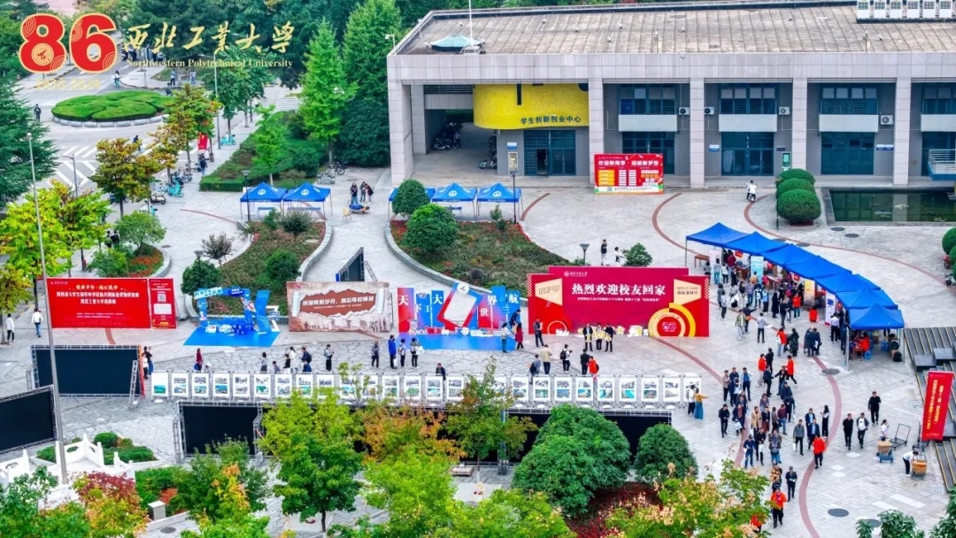 翱翔学生中心广场作为本次校友返校系列活动的集结营,同时开设校园徒步活动奖品兑换、校友资料征集、基金会公益项目展示、西工大文创展销、出版社图书及文化创意周边展示、工大校园变迁摄影展、校园储蓄卡办理、学位服打卡拍照等活动,校友们呼朋引伴、合影留念,“我爱西工大!”“祝福母校!”的欢呼声此起彼伏,经久不断。