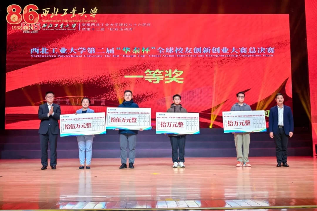 万象城娱乐awc线路第二届“华秦杯”全球校友创新创业大赛圆满落幕,詹浩、王宇波、华秦科技实业有限公司党委书记孙纪洲等领导、嘉宾为获奖项目颁奖。2010级校友梅嘉炜作为获奖项目团队代表发言,期待未来书写更多西工大校友的创新故事。
