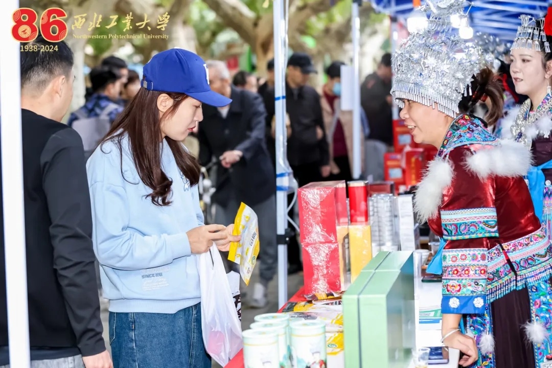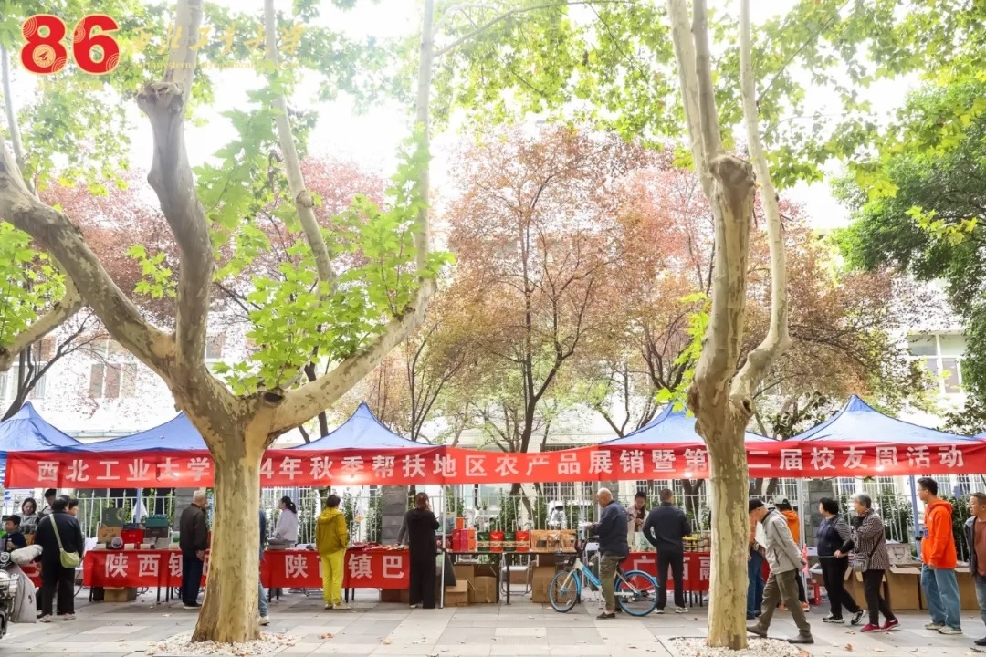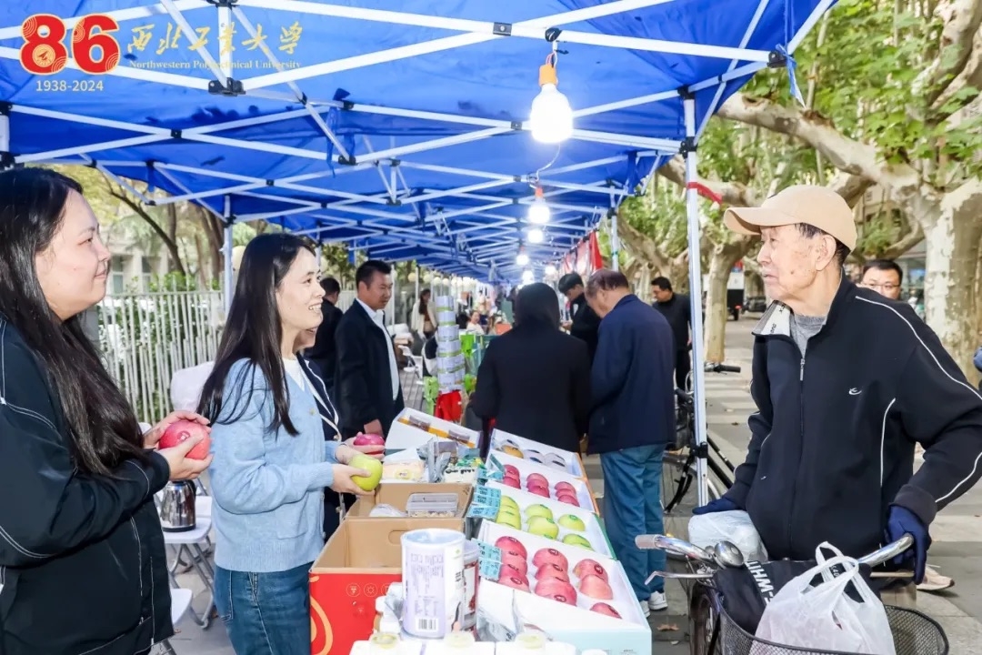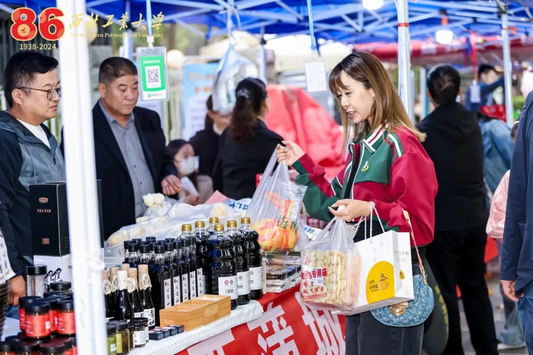 10月17—20日,学校还在友谊校区三航路举办2024年秋季农产品校园展销活动,本次活动是学校贯彻落实国家乡村振兴战略相关部署的实际行动。活动现场,汇集了几十种万象城帮扶地区的优质特色农产品,从来自千里之外的广西融水的红薯粉、大苗山古树红茶、灵芝片、甘草金桔,到陕西镇巴县的牛肉干、腊肉、树花菜、羊肚菌,再到蒲城县的脆皮油糕、杂粮礼盒、烤兔、金粟山椒麻鸡,还有城固县的土蜂蜜、茶叶、白水县的苹果等集中展销。活动现场热闹非凡,琳琅满目的农产品吸引了众多师生、校友和家属的目光,大家购买到“绿色、健康、美味”的农产品同时,也为乡村振兴贡献了一份力量!