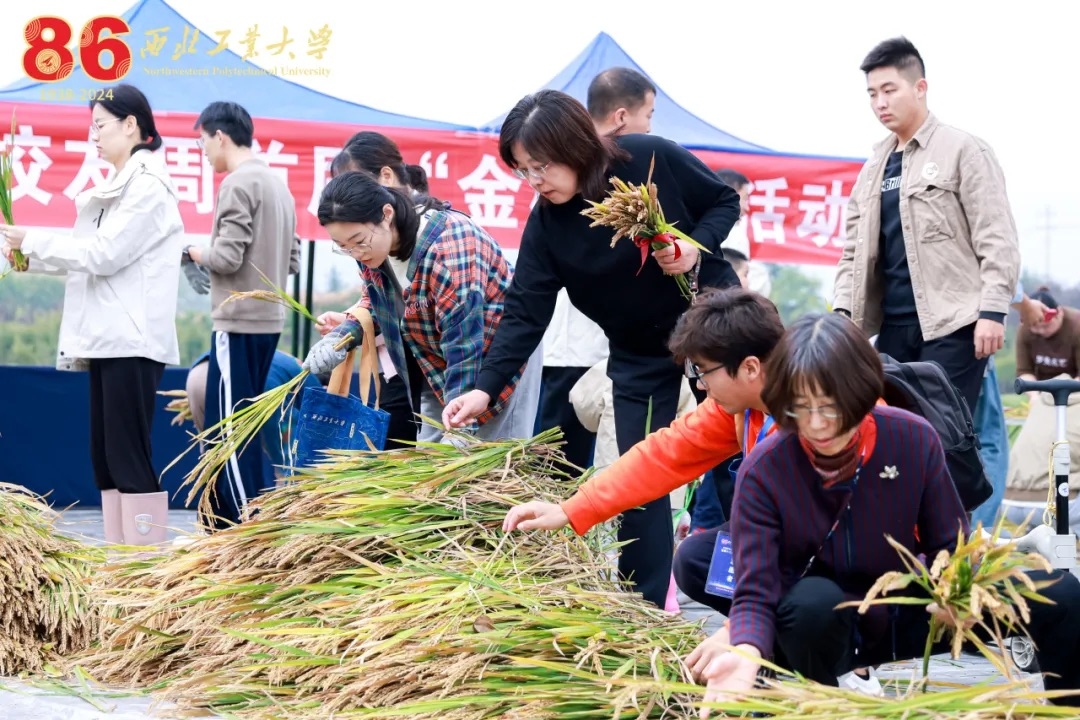 大家身着专业设备进入稻田,在后勤集团专业技术人员的悉心指导下,收割稻谷、现场脱粒、捆扎稻草,进一步感受农耕文化的魅力。