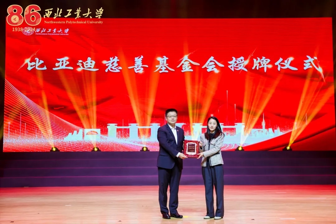大方集团(西安)控股集团董事长、校友王方胜,捐资支持西工大击剑队,并设立“大方击剑训练基地”。比亚迪慈善基金会向学校捐赠,设立比亚迪奖学金和奖教金。招商银行股份有限公司西安分行向学校捐赠,支持学校高质量发展。领导嘉宾依次登台揭牌授牌,现场观众以热烈掌声感谢慷慨助力学校发展。
