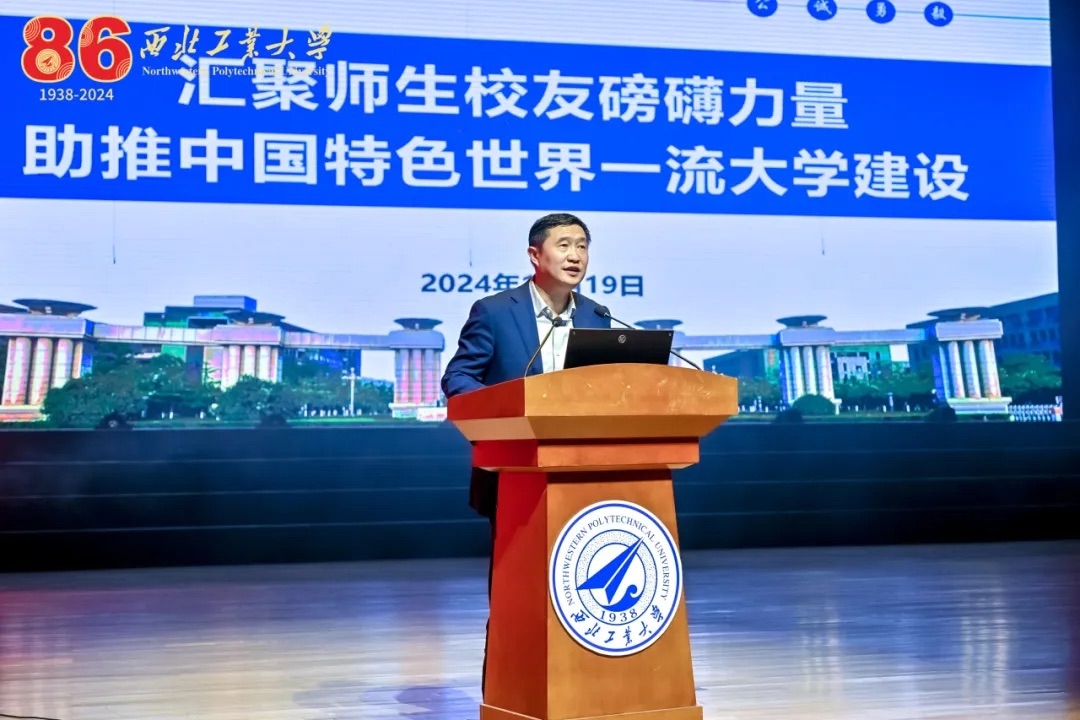 詹浩代表学校热烈欢迎参加本次活动的嘉宾和校友。他表示,近年来,学校扎根中国大地,以习近平总书记关于教育、科技、人才工作重要论述精神为指引,凝心聚力、奋发进取,整体呈现出蓬勃向上、追求卓越的迸发态势,开创了学校高质量内涵式发展的新征程。刚刚胜利召开的学校第十四次党代会提出了“天下工大、世界三航”远景目标,制定了国防军工高校创建中国特色世界一流大学的西工大方案;确定了新的“三步走”战略构想,为学校未来五年乃至更长时期的改革创新发展树立了“方向标”,规划了“施工图”,制定了“时间表”。他诚挚希望广大校友能继续关注并支持学校事业发展,为中国特色世界一流大学建设贡献校友力量。