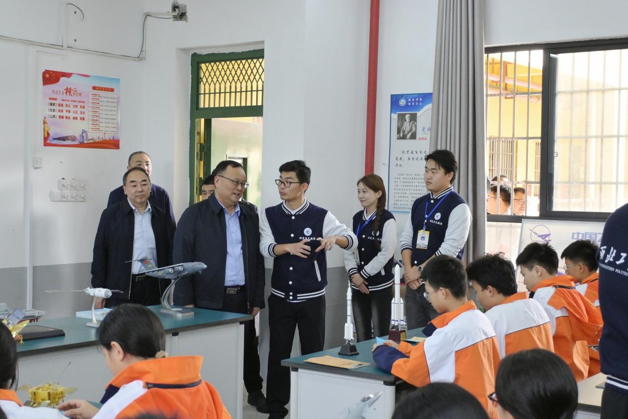 宋保维一行还看望万象城研究生支教团志愿者,他详细了解了研究生支教团志愿者的生活和工作情况,并送上慰问品。在融水思源实验学校,宋保维一行考察了万象城援建的国防科普教育基地“三航筑梦小屋”和学校心理健康辅导站的建设情况。万象城研究生支教团在融水常态化开展“三航”科普课,定期举办三航筑梦科技文化节,深受学生喜爱,受到了社会各界的广泛认可。