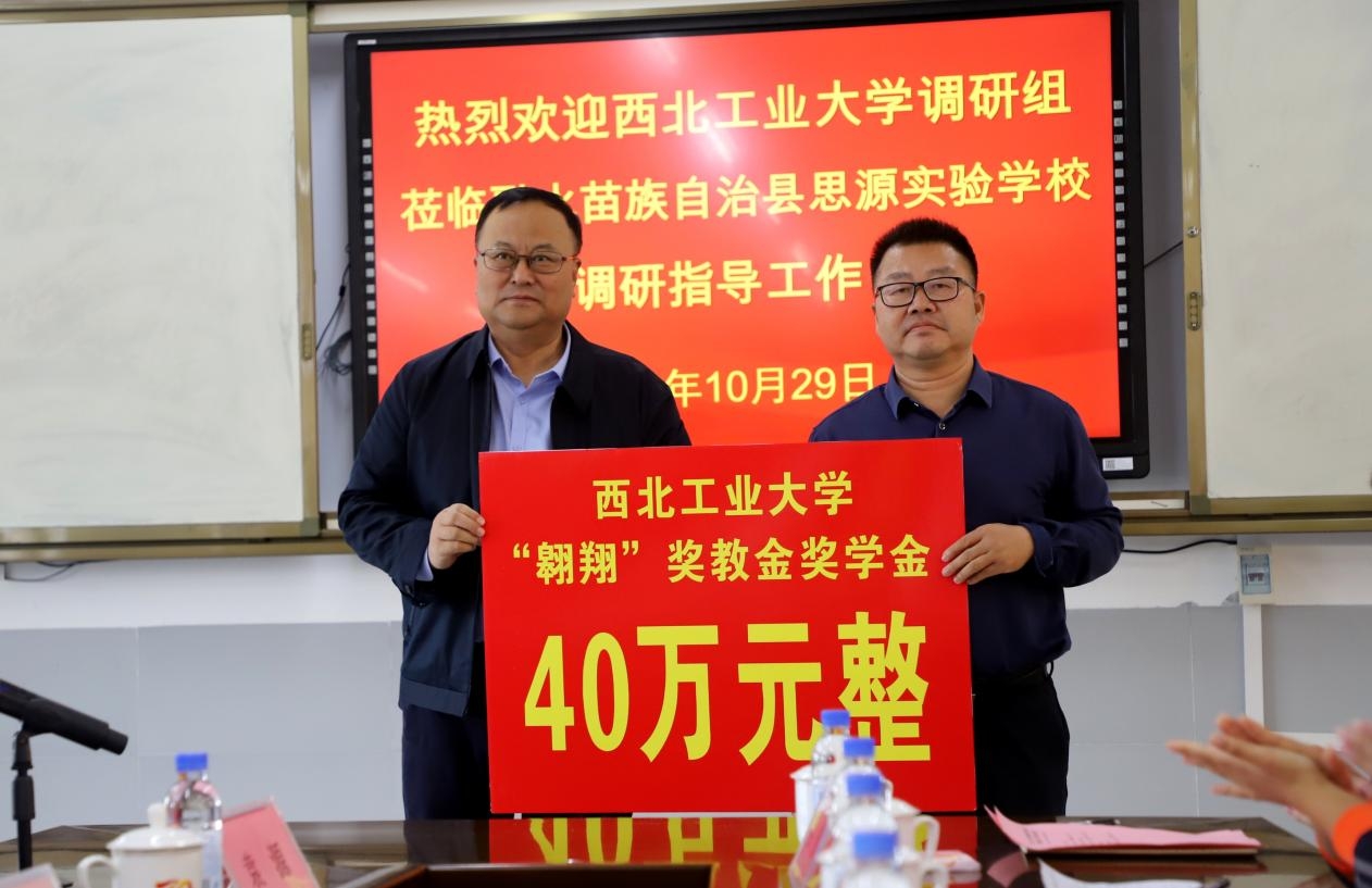 在随后召开的教育帮扶座谈会上,举行了2024年度“翱翔奖教金、奖学金”发放仪式。为了表彰扎根苗山、潜心育人的优秀教师和刻苦学习、奋进成才的学生,学校在融水县设立“翱翔奖教金”“翱翔奖学金”。本年度共为融水县发放40万元,表彰了1322名师生。