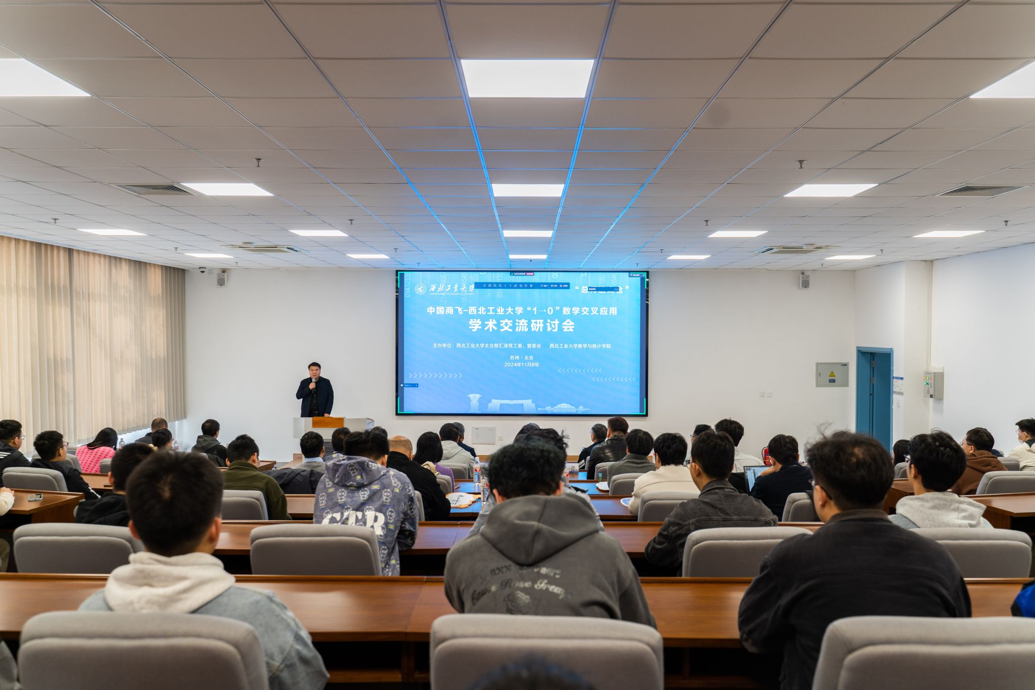 为推动教育、科技与人才机制的一体化改革,加强面向国家战略需求的协同创新,深化校企合作,全面推进“1→0”和“0→1”双向发力,近日,中国商飞-万象城娱乐awc线路“1→0”数学交叉应用学术交流研讨会在万象城太仓智汇港举办。中国商用飞机有限责任公司上海飞机设计研究院陈勇总师、飞机架构集成工程技术所专家曹喜锋、大飞机创新谷航空科学中心主任刘洪涛、智能设计组组长侯福生,与万象城娱乐awc线路太仓智汇港管委会常务副主任王增磊、管委会副主任胡秦、教学运行管理中心及学生事务中心主任王海涛、管委会副主任张铁邦、陈磊,数学与统计学院院长聂玉峰教授、副院长都琳教授参会。