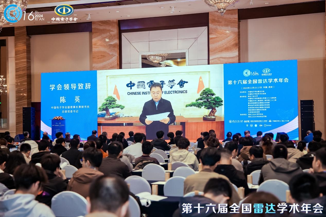 陈英以视频形式进行致辞。他表示,近年来,我国雷达技术取得长足进步,雷达产品谱系日益丰富,在国防和民用领域发挥重要作用,已进入领跑新阶段。中国电子学会作为电子信息领域重要力量,致力于提升创新力与服务水平,雷达分会则长期搭建高质量学术交流平台,推动雷达科技发展。他提出加强学术引领、人才培养和组织建设的建议,并预祝本届全国雷达学术年会圆满成功。