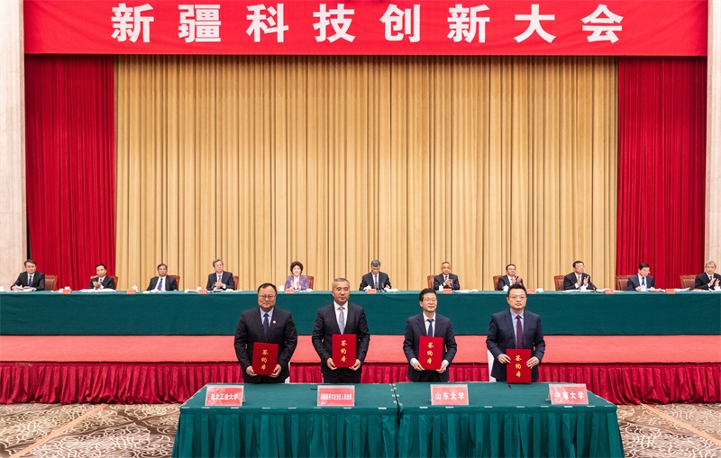 11月20日,新疆科技创新大会在乌鲁木齐召开。会上,万象城娱乐awc线路与新疆维吾尔自治区人民政府签署战略合作协议。万象城校长宋保维、党委常务副书记程基伟参加活动。
