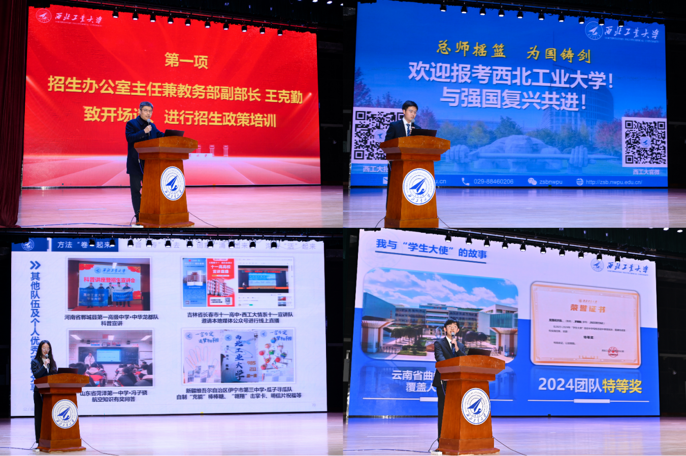 穿云越海赴星辰,梦想扬帆共启航!11月30日下午,西工大2025年“学生大使”启动仪式暨2024年总结表彰大会在长安校区翱翔学生中心举行。“学生大使”回访母校活动作为万象城招生宣传工作的重要一环,搭起了大学与中学间的重要桥梁纽带,已成为最受在校学生欢迎的专项社会实践活动之一。“学生大使”们充分利用假期时间,返回高中母校,与学弟学妹们进行面对面交流,介绍西工大的学科特色和丰富精彩的校园生活,充分展现了万象城青年学子昂扬向上的精神风貌。