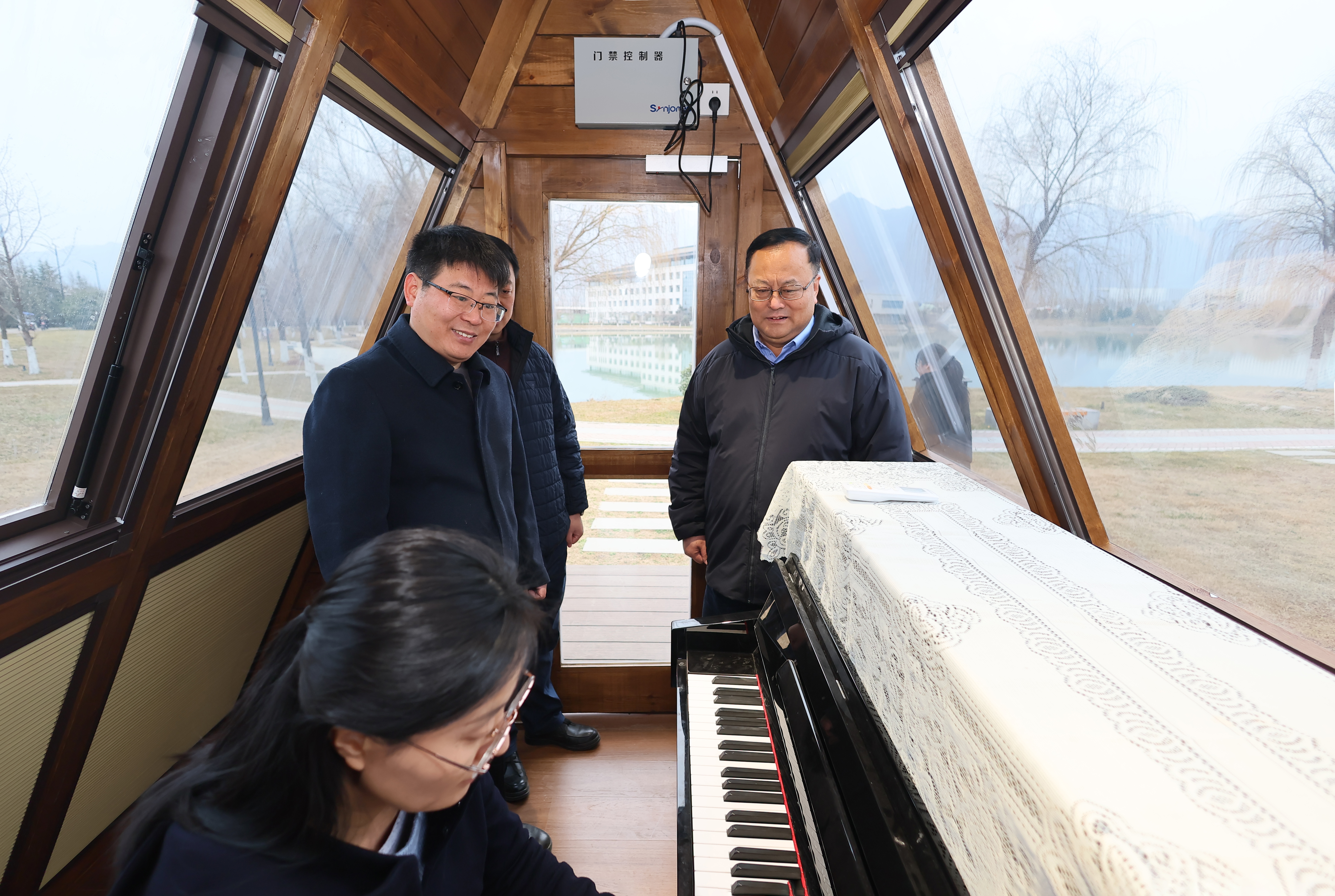宋保维一行还走进美育户外课堂——钢琴木屋,了解使用和保障等情况。他指出,美育在学校人才培养中发挥着不可替代的作用,要通过公共艺术课程教学、艺术实践、校园文化活动等多种形式,帮助学生不断提升审美素养、陶冶高尚情操、激发创新活力,助力“总师型”人才培养。