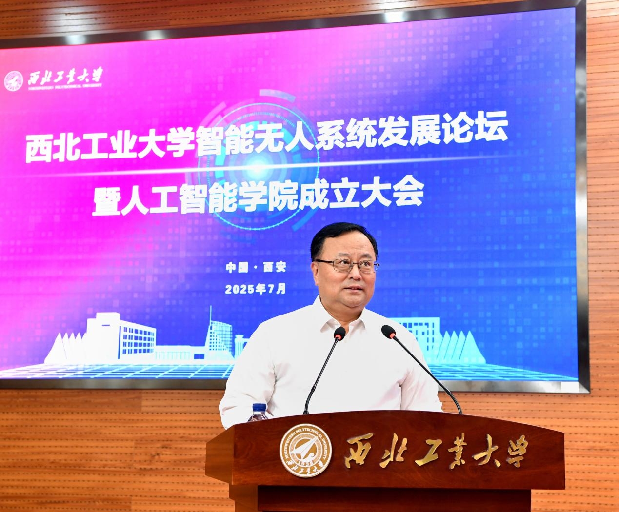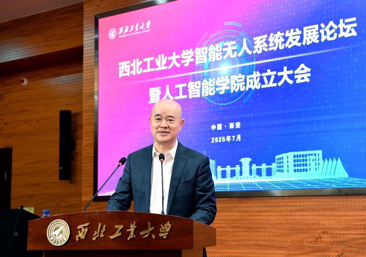 宋保维向长期关心支持学校事业发展的兄弟院校、合作单位表示感谢。他表示,西工大作为高等教育第一方阵、国家战略科技力量重要组成部分,必须抢抓人工智能发展重大机遇,学校在人工智能人才培养和科学研究方面有着深厚的积淀,对人工智能学院的未来发展充满信心。人工智能学院的成立是西工大发展历史中具有里程碑意义的一件大事,关乎学校长远发展,他对高标准建好人工智能学院提出三点要求:要打造特色品牌,立足学校“国防、三航、系统”优势,推动人工智能与三航、材料、机械等多学科的交叉融合,打造智能无人系统特色,努力将学院建设成为国防智能科技创新的重要策源地。要创新育人模式,构建“精英班+开放班”的本科生培养模式、军工赋能的研究生培养模式,建强特色课程体系,聘请军工集团总师担任企业导师,努力将学院建成“总师型”人才培养的示范特区。要深化开放协同,进一步加大与军工集团、运营商的战略合作,构建智能装备领域的“教学-科研-实战”全场景贯通体系,人才共育、技术共研、平台共享,努力将学院建成校企融合发展的卓越标杆。