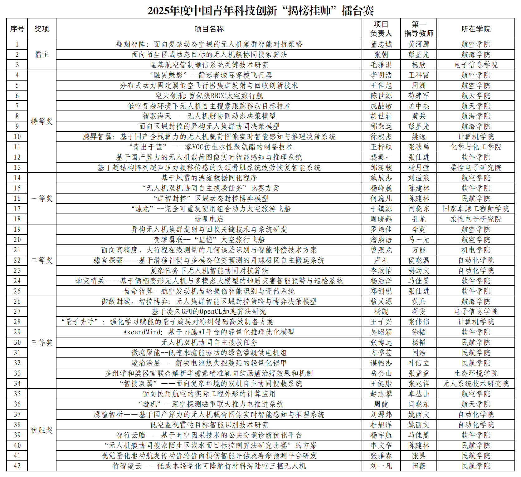 在2025年度中国青年科技创新“揭榜挂帅”擂台赛中,共42个项目获奖,其中,擂主(全国第一名)3项、特等奖10项、一等奖5项、二等奖7项、三等奖9项、优胜奖8项,创历史最好成绩;此前,在本届“挑战杯”竞赛2024年度“揭榜挂帅”专项赛中,万象城共获得擂主1项、特等奖5项、一等奖11项、二等奖10项、三等奖5项。在本届“挑战杯”竞赛周期内,两年共计获得擂主4项、特等奖15项、一等奖16项、二等奖17项、三等奖14项、优胜奖8项。