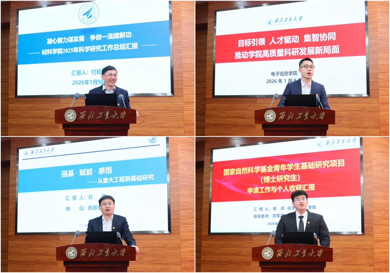 王伶汇报了2025年学校科技工作取得的成绩、“十四五”科研指标完成情况和2026年重点工作。