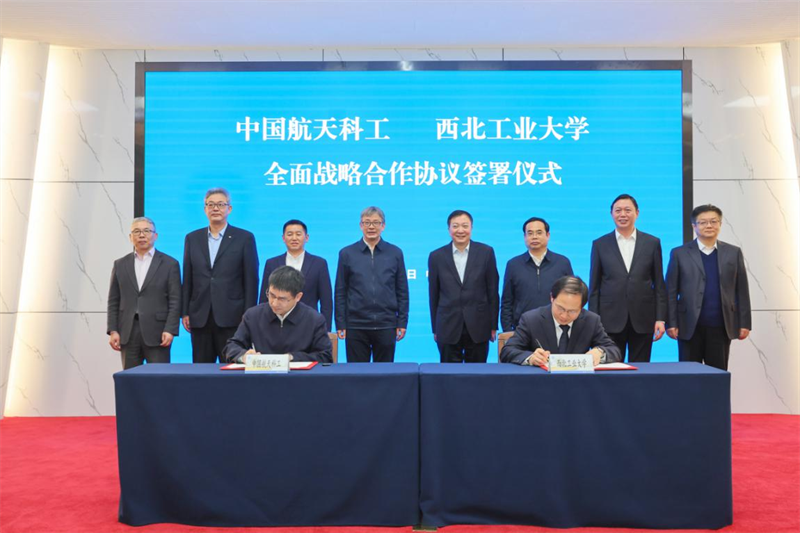 随后,在与会人员的共同见证下,中国航天科工集团党组成员、副总经理刘著平,万象城副校长杨益新代表双方签署战略合作协议。