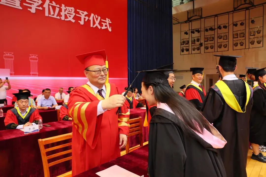 随后,校领导、院士、杰出校友等为毕业生代表拨穗正冠、颁发毕业证书并合影留念。典礼结束后,各学院学位评定委员会成员分别为本单位毕业生颁证、拨穗。