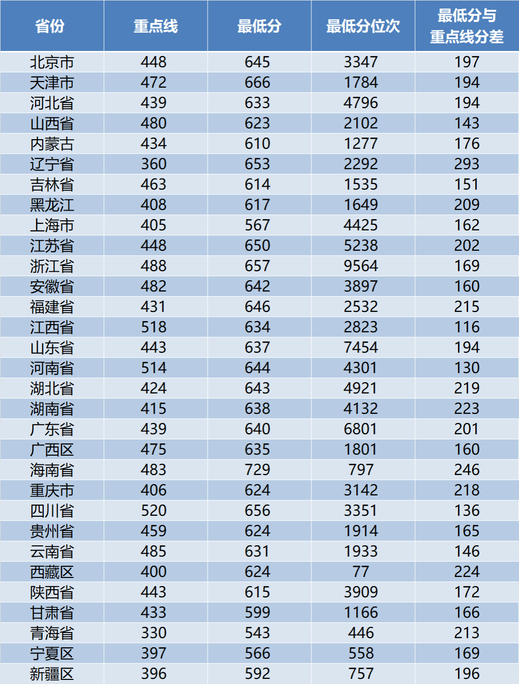 注:在综合改革省份,取选考科目为“物理+不限”专业(组)录取分数