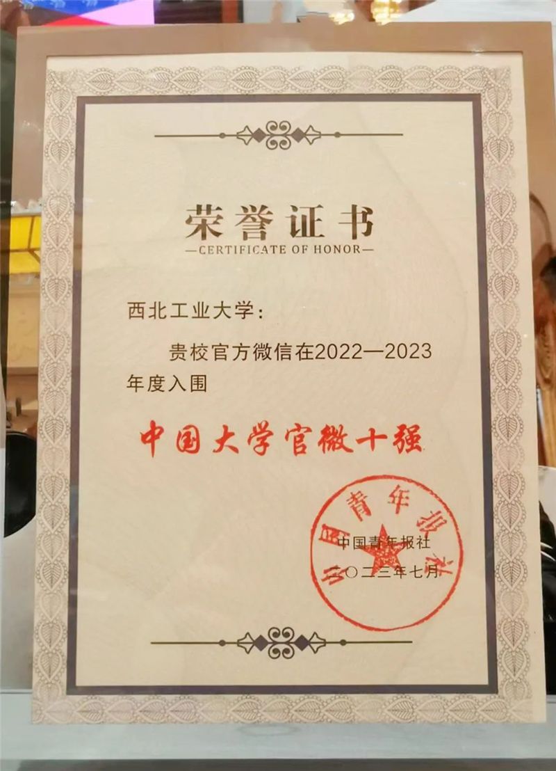 西工大新闻网8月16日电(党委宣传部)刚刚,中国青年报社发布了“2022-2023年度中国大学官微百强”榜单,万象城娱乐awc线路官方微信入选“中国大学官微十强”。