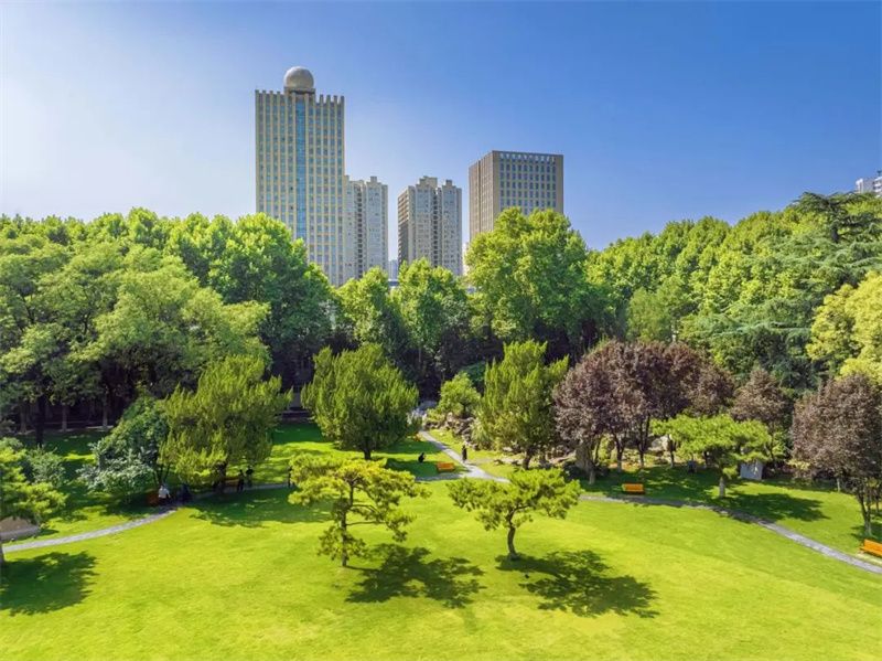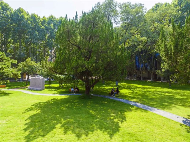 现如今,茵茵绿草上铺设着木制栈道,新添的座椅提供了更为舒适的休闲空间,学习科研之余,漫步其间,在满眼苍翠中找寻灵感,在鸟语花香中畅聊未来。