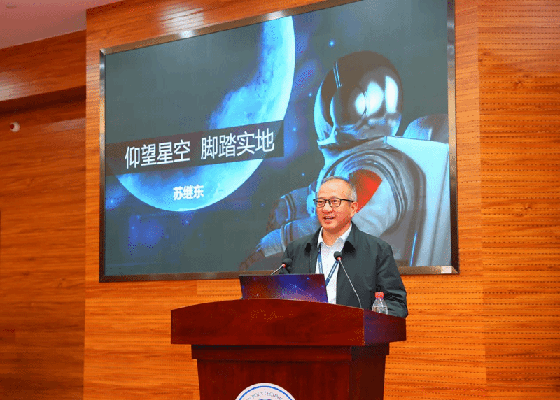 苏继东结合自己在西工大学习成长经历讲述了深度参与中国航天“从无到有、从小到大、从弱到强”的奋斗历程。他表示,“正是学校深厚的‘总师育人文化’,培养出学生‘专业精、系统强、重实践、敢担当’的优秀素质,这些让我在工作中受益匪浅,也成为了我学习和成长的精神源泉。”