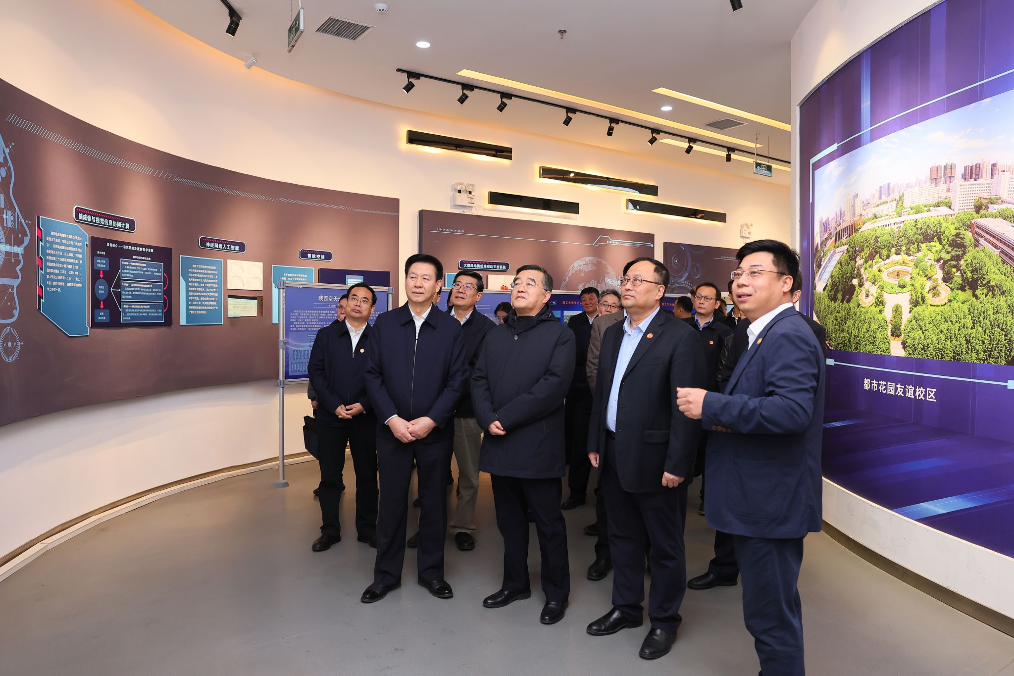 张庆伟一行参观了西工大科技馆,考察西工大在航空、航天、航海等领域的创新成果,了解西工大无人机研发及科技成果转化“三项改革”等工作情况。