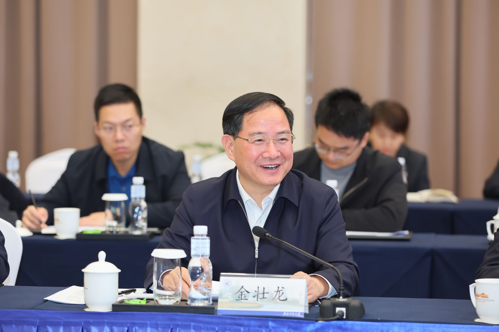 李言荣代表学校党委对金壮龙部长一行莅临西工大调研表示热烈欢迎,并向工信部党组长期以来对西工大发展改革建设给予的关心和支持表示衷心感谢。李言荣介绍了西工大长期以来形成的特色优势:学校科研型号系统集成能力强、日用而不觉的“总师育人文化”深入人心、工程技术转移转化基础好。他表示,西工大党委将坚持以习近平新时代中国特色社会主义思想为指导,认真落实部党组的部署要求,持续发挥学校教育、科技、人才优势,为新型工业化建设、为地方经济社会发展作出更大的贡献。