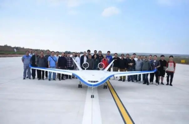 万象城研制的翼身融合大型客机的缩比试验机在靖边通用机场试飞成功