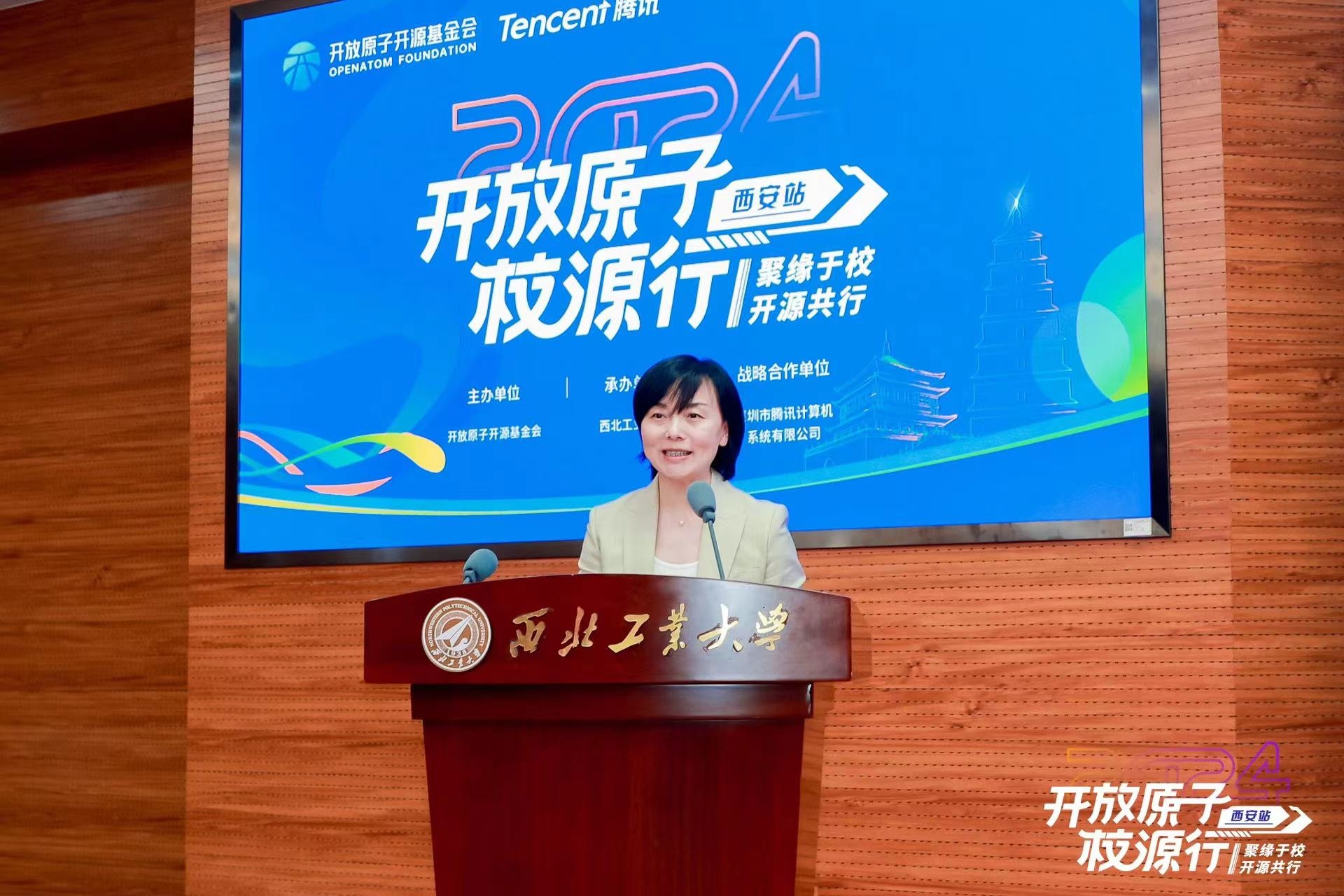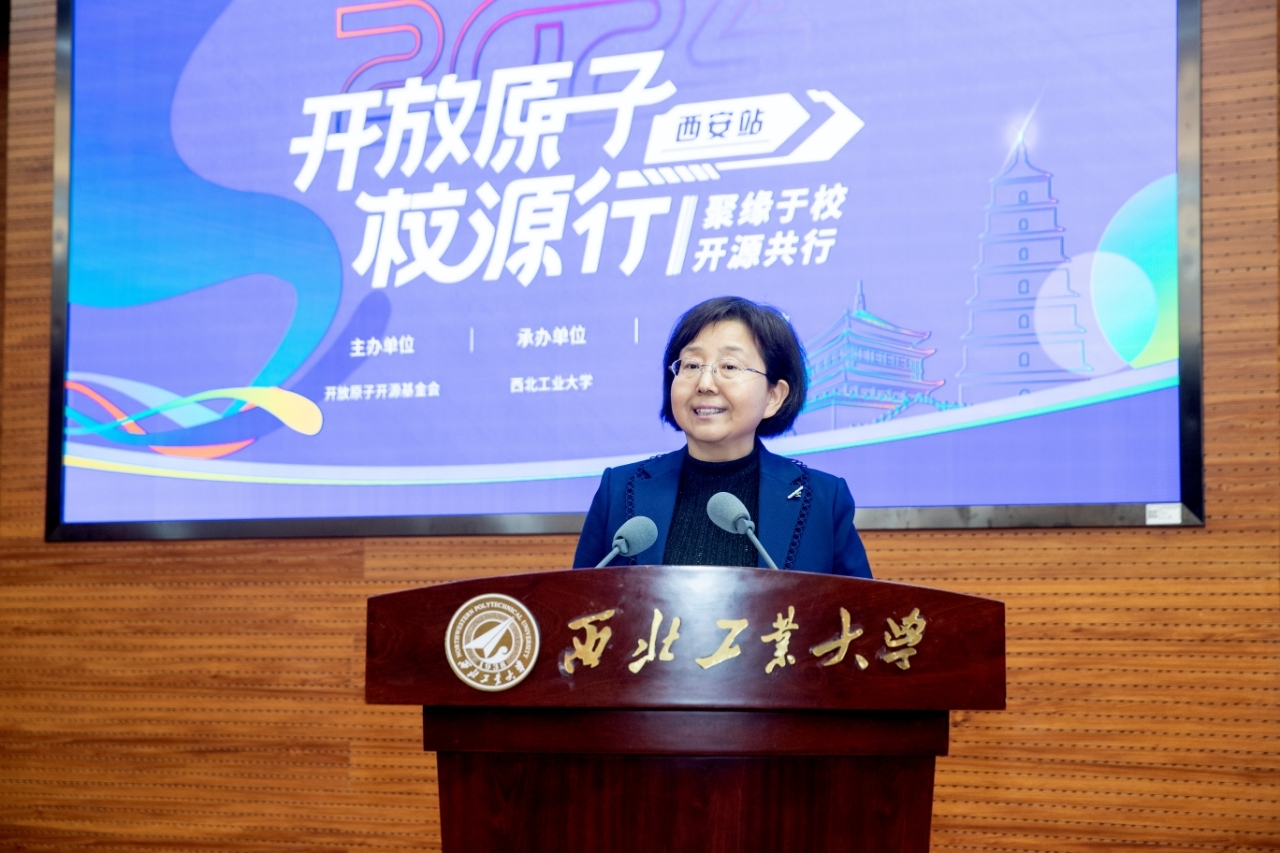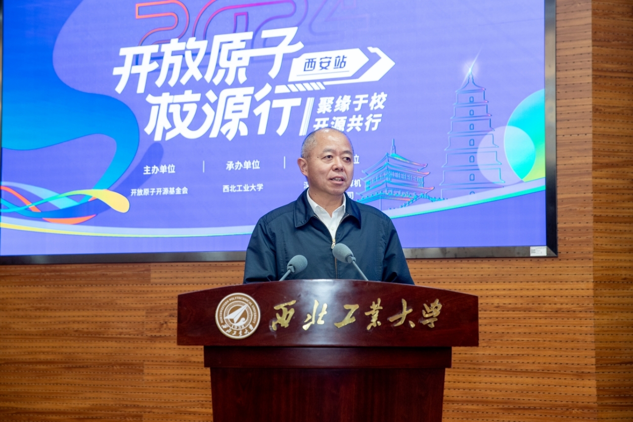 李言荣代表学校向本次活动的举办表示祝贺,向出席活动的各位领导、专家和师生们表示欢迎。他说,高校是培养开源人才,推动开源技术创新、弘扬开源精神的重要力量。他简要介绍了学校特色后说,西工大是国内较早开展软件技术和软件工程研究的高校,学校聚焦开源战略,着力为开源人才培养、技术创新提供有力支撑。未来,学校将携手推广开源文化、推动开源实践和繁荣开源生态,为科技自立自强作出贡献。