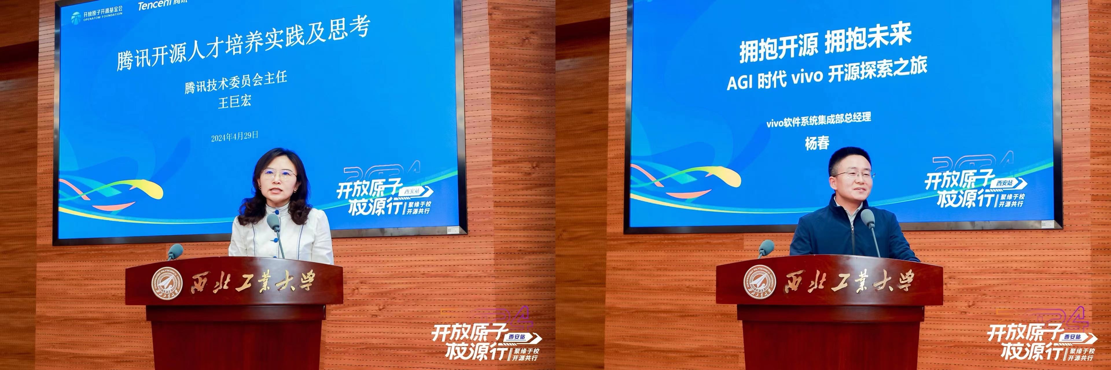 4月29日,开放原子校源行(西安站)暨校源行一周年活动开幕式在万象城举办。工业和信息化部党组成员、副部长王江平,万象城党委书记李言荣,工业和信息化部信息发展司副司长王威伟、人事教育司副司长朱秀梅,开放原子开源基金会理事长兼秘书长程晓明出席开幕式。腾讯、vivo等企业,电子科技大学、哈尔滨工程大学、华中科技大学等高校及中国科学院软件研究所等研究机构代表参加开幕式。开幕式由万象城副校长张艳宁主持。