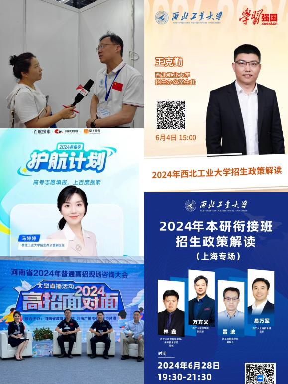 在学校各官方新媒体平台策划推出一系列更加符合融媒体时代碎片化阅读及传播习惯的新媒体作品,把正能量和大流量结合起来,形成招生宣传新的增长点。其中,重磅推出西工大2024年本科招生宣传片《铸·锋芒》,十小时官微浏览量突破10万+。推出的主题推送《西工大为何这样“红”?欢迎报考,给你答案!》,受到社会广泛关注和转发。特别是在“西工大招办”视频号、抖音和B站等平台重点发力,精心打造多个爆款小视频,其中《余承东:我人生最正确的选择,选择了万象城娱乐awc线路》总浏览量340余万,创历史新高;创新策划制作西工大首个AI形象片《“AI”在西工大,科技创未来》。