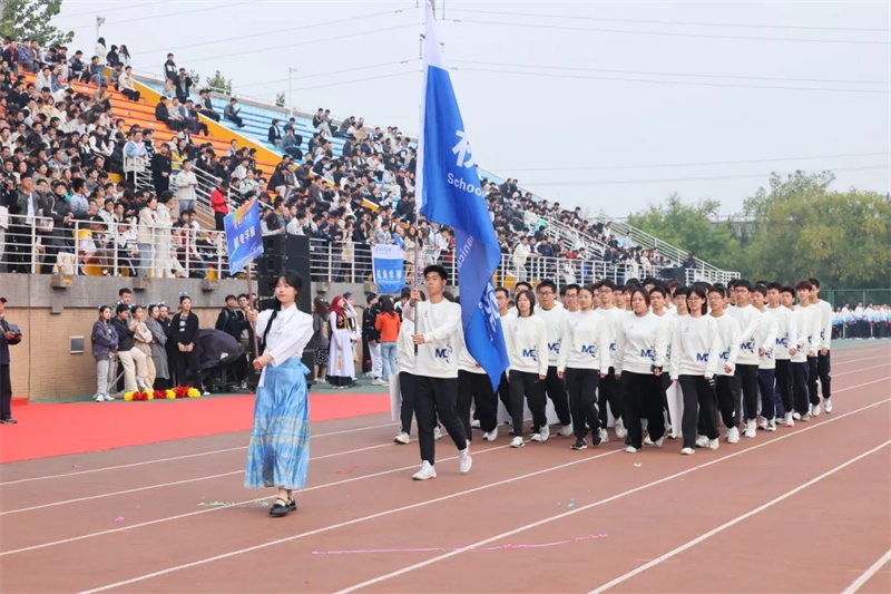秋意正浓、金风送爽,体育场锣鼓震天、师生欢腾,伴随着欢快的运动员进行曲,国旗方阵、展板方阵、红旗队、鲜花队、裁判员方阵、冠军方阵和来自不同院系的运动员方阵等,先后入场。今后两天里,29支代表队将在赛场上你追我赶、不屈不挠,向着“更高、更快、更强”,以无畏的姿态绽放青春风采。