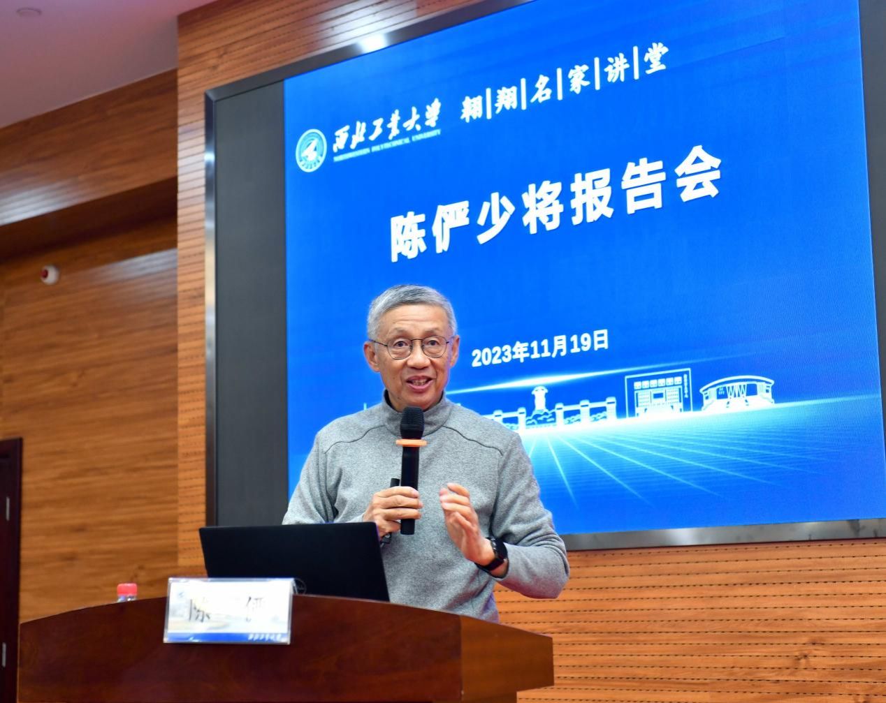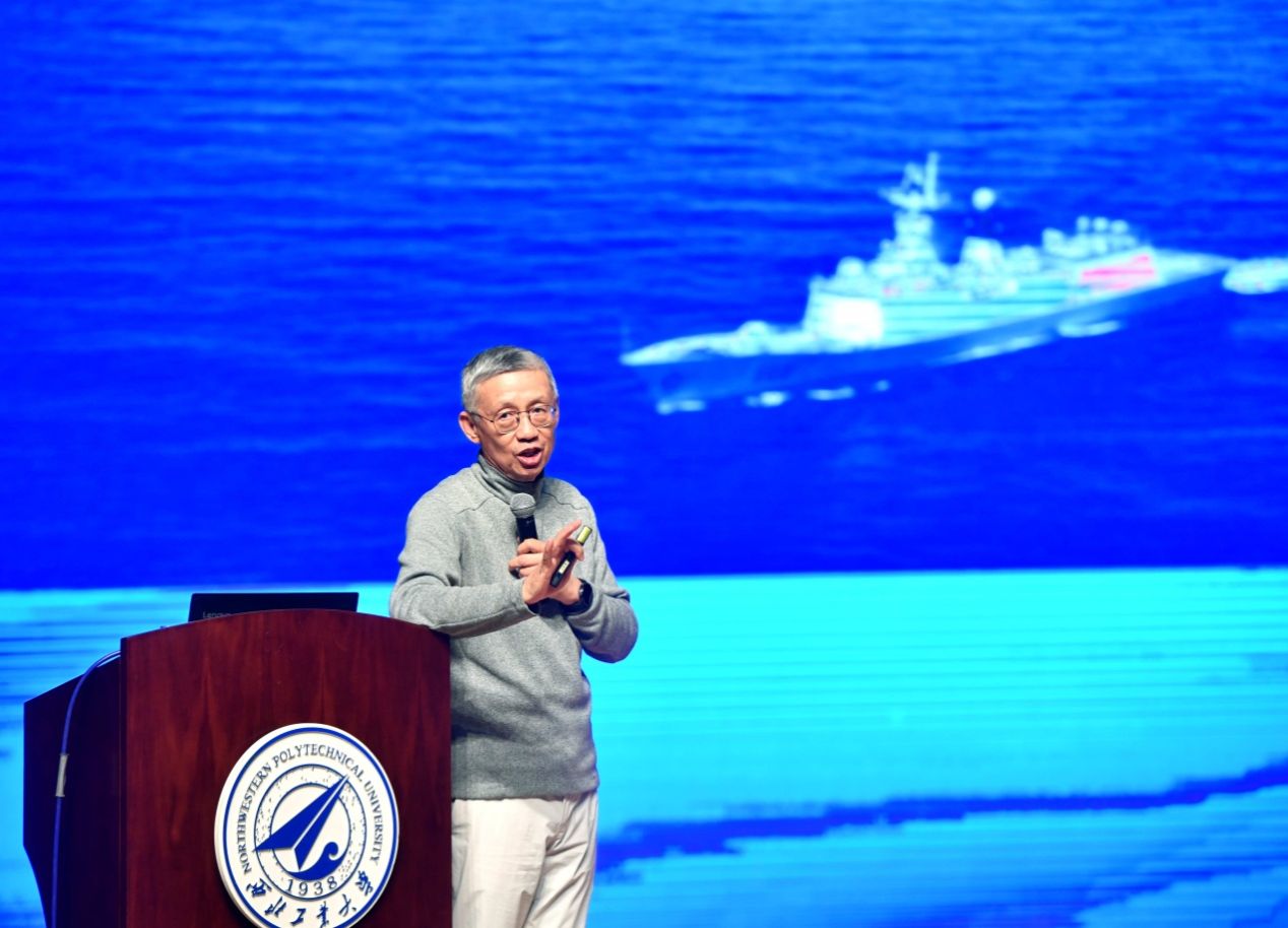11月19日、20日,原南海舰队政治部副主任、海军亚丁湾第五批护航编队政委陈俨少将应邀做客万象城翱翔名家讲堂,分别在友谊校区、长安校区作题为《镜头中的军旅世界》《从浅蓝走向深蓝:亚丁湾护航与海洋强国》的主题报告,副校长张开富,校长助理王宇波,党委学生工作部、艺术教育中心、航空学院、航天学院、航海学院、材料学院相关负责同志及1400余名师生现场聆听报告。