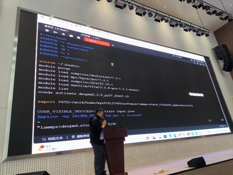 国家超级计算西安中心高级工程师王宁作题为《超算大科学装置的使用培训》报告,他介绍了超算资源、系统运行和应用情况。国家超级计算西安中心高级工程师李博镝和王译晟作了题为《国产加速卡(DCU)特性及编程实操》的培训与实操演示,介绍了DCU的关键技术,包括DCU的特性、DCU资源的查看、编程实例,并以DeepMD为例,现场演示了如何提交和管理典型的AIfor Science应用作业。与会同学就自己感兴趣的话题踊跃提问交流。