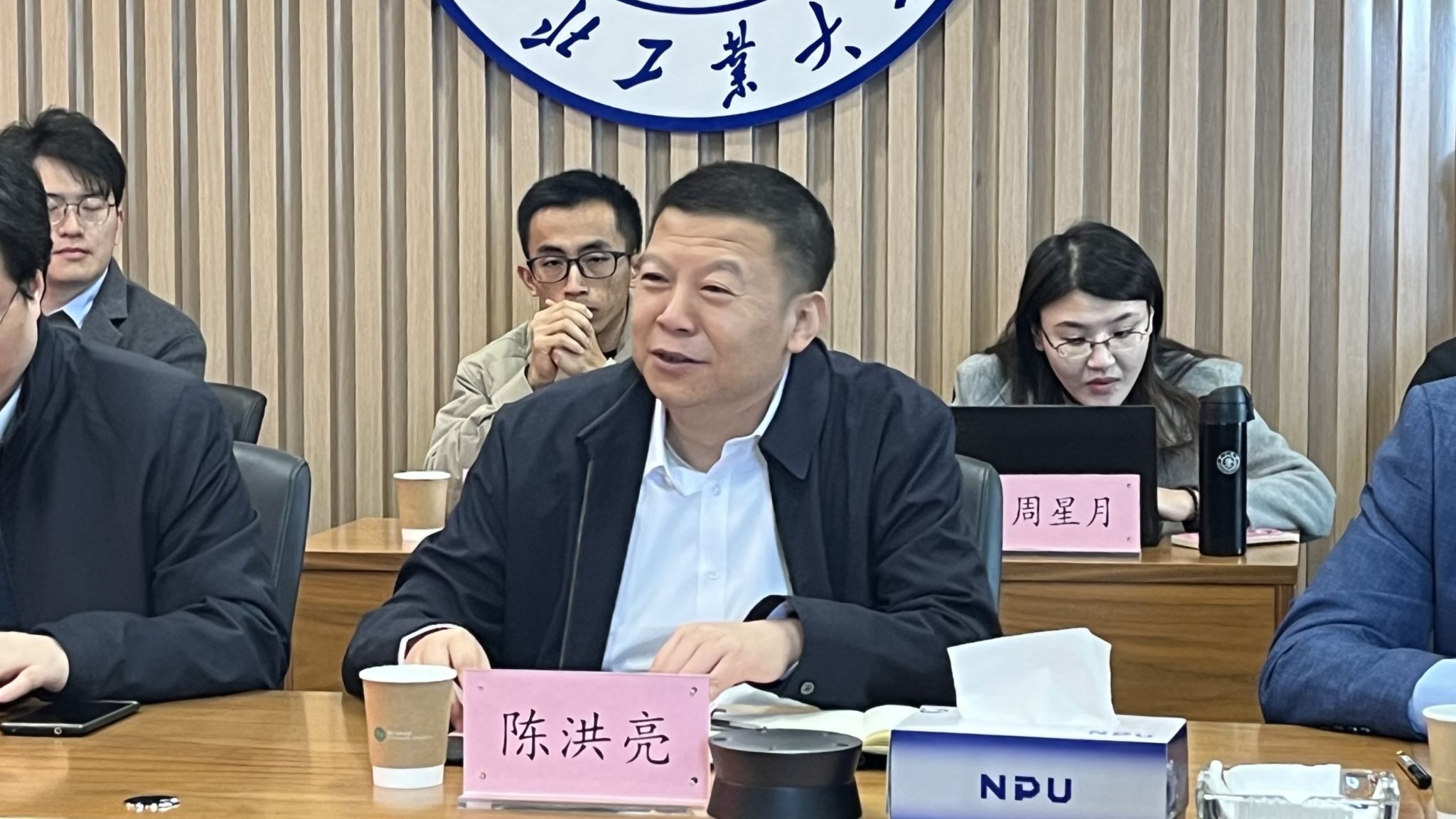 杨坤德介绍了出席会议的来宾及教师,陈洪亮致辞,祝贺海洋研究院成立一周年,并对与会各单位来宾的到来表示热烈欢迎。他表示,海洋研究院是西工大在太仓智汇港新成立的第一个二级单位,坚持“聚焦需求、增量发展、交叉融合、开拓创新”发展思路,重点瞄准国家重大需求和国际科技前沿,汇聚涉海创新力量,积极推进船海领域科学研究、人才培养和队伍建设,短短一年就在各方面取得了突出成绩,为将来长远快速发展迈出了坚实步伐。