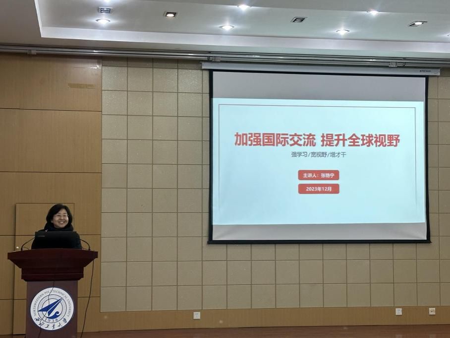 张艳宁从回顾历史、把握大局、摆正角色三个角度入手,结合学习习近平新时代中国特色社会主义思想、党的二十大精神、习近平总书记在中共中央政治局第五次集体学习上的重要讲话精神,从新时代教育国际合作交流概况、高等教育对外开放相关政策、学校国际交流合作主要成效、青年大学生全球视野提升学校国际交流政策等方面阐释了强学习、宽视野、增才干的主题思想。