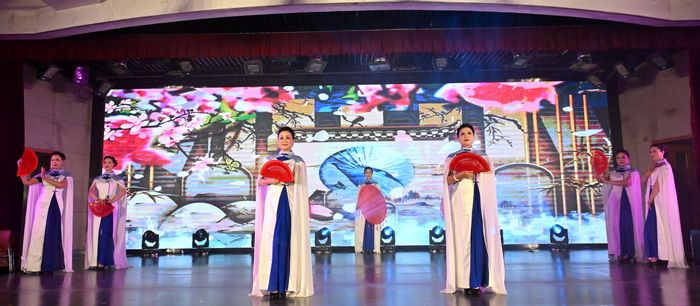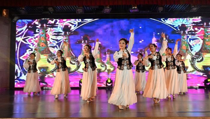 玛依拉舞蹈队带来舞蹈《林帕黛》,老师们含蓄而高雅,曼妙的舞姿具有浓郁的民族风格,展现出新疆美女的俏皮灵动。