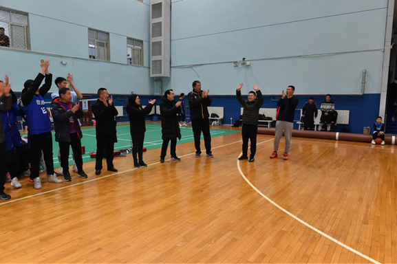 蒲传新老师在致词中表示,教工们在积极向上的篮球运动中得到的感悟将会转化为动力,激励我们向127目标前进!