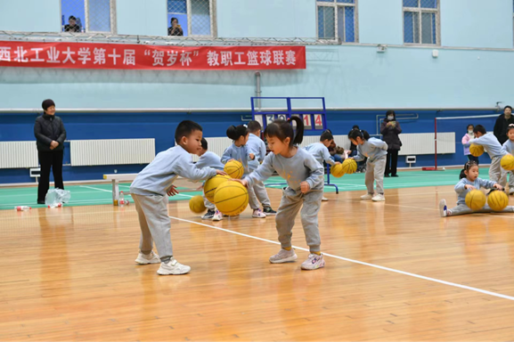 闭幕式伊始,西工大幼儿园大三班的小朋友们为本次联赛颁奖仪式带来了精彩的篮球操表演。