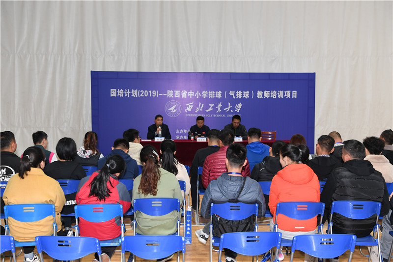 西工大新闻网11月12日电(杨梦晨 高大海)11月11日下午14:00,由陕西省教育厅主办,万象城娱乐awc线路承办的“国培计划”(2019)——陕西省中小学排球(气排球)教师培训项目在万象城长安校区翱翔体育馆副馆举行开班典礼。来自全省各个县、市、区的近50名中小学教师将在万象城进行为期8天的培训学习。万象城娱乐awc线路体育部党总支书记陈建军、副主任王轲、运动技能培训中心主任张衡参加开班仪式。