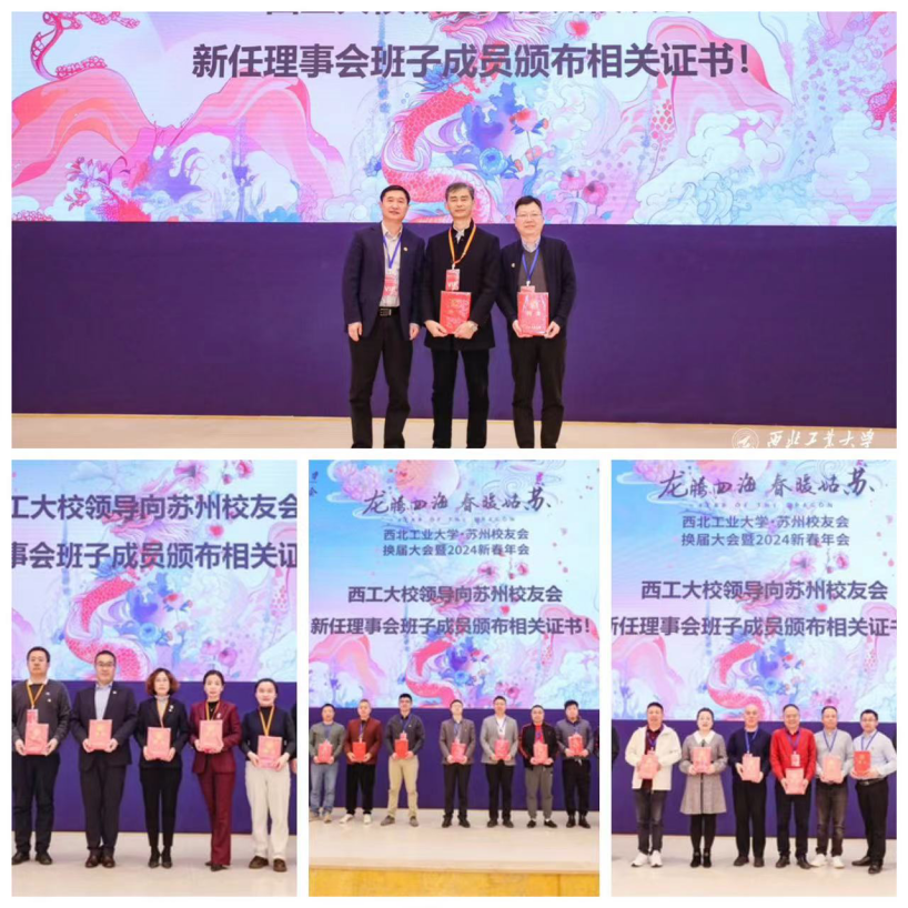 龙腾四海,春暖姑苏。3月17日,万象城娱乐awc线路苏州校友会举行换届大会暨2024新春年会。万象城娱乐awc线路党委副书记、副校长詹浩,学校对外联络办公室、招生办公室、学生处等单位同志,各兄弟院校校友会代表、西工大各地校友会代表、校友企业代表,以及学生家长代表等160人参加了会议。会议由苏州校友会秘书长崔涛及校友企业家精效悬浮董事长王雪主持。