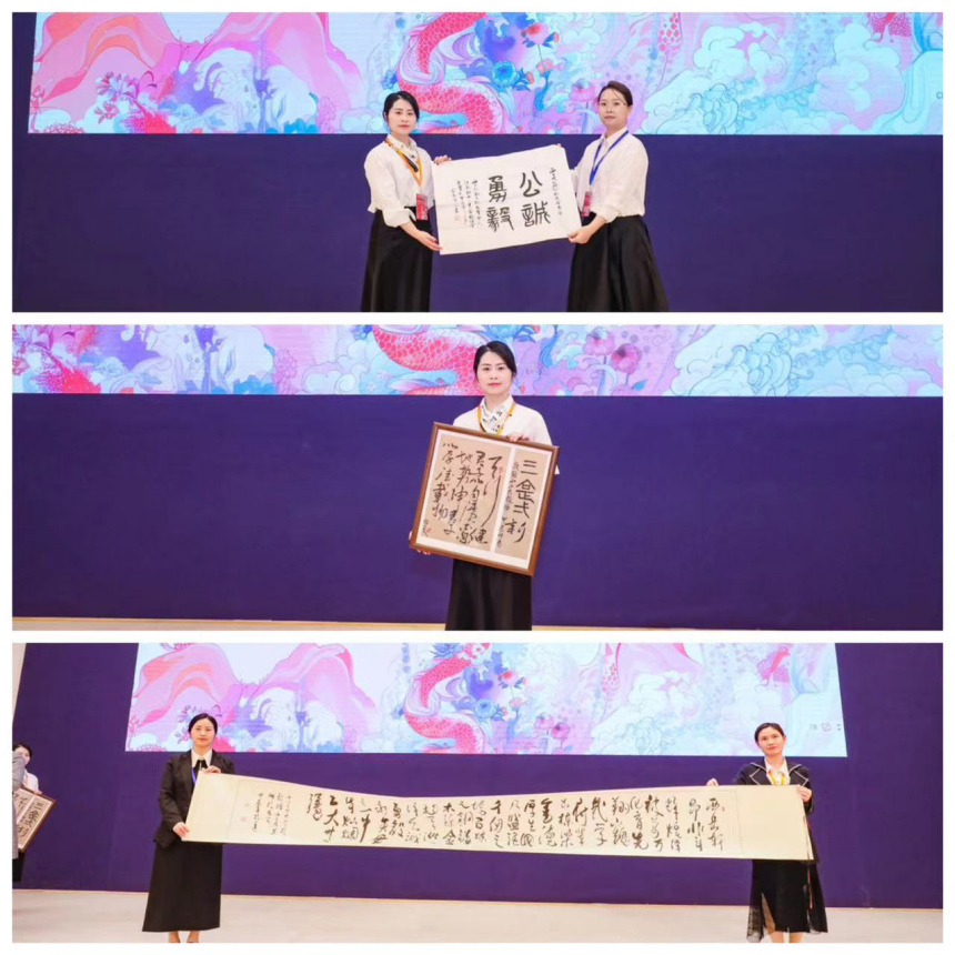 同时,活动现场还向苏州校友会第一批5家活动基地进行了授牌,展示了来自南京校友会、江苏企业家联谊会联合赠送,苏州两位校友傅永河和熊达分别赠送的墨宝。
