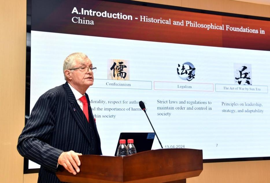 帕特里克·奈斯大使结合中国与欧洲不同历史、哲学、文化背景因素影响,分析了中国与欧洲领导力形式的差异,并着重围绕文化基础维度,对不同的领导力方式进行比较分析。他结合多年外交工作的丰富经验,详细介绍了民主型、服务型、变革型等核心领导力形式,并鼓励同学们在挑战与机遇并存的时代条件下,努力培养自身的跨文化交流领导力,成为具有文化适应能力的创新型领导者。