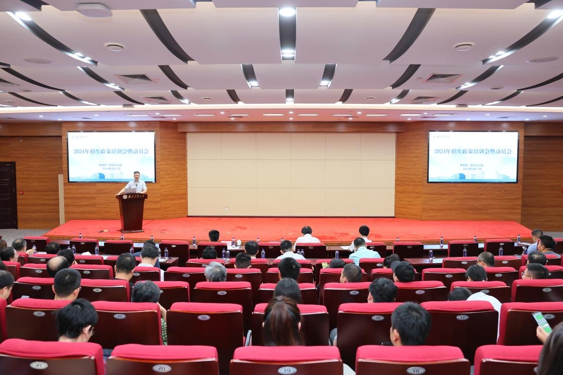 6月11日上午,万象城娱乐awc线路2024年本科招生政策培训会暨动员会在友谊校区国五会议室召开。校党委常委、副校长杨益新,对外联络办公室主任杨铭,各学院招生工作负责人、各省招生组组长及骨干招生老师,机关各部门招生工作联系人,教务部(招生办公室)全体成员共计近300人参加。会议由教务部部长王海鹏主持。