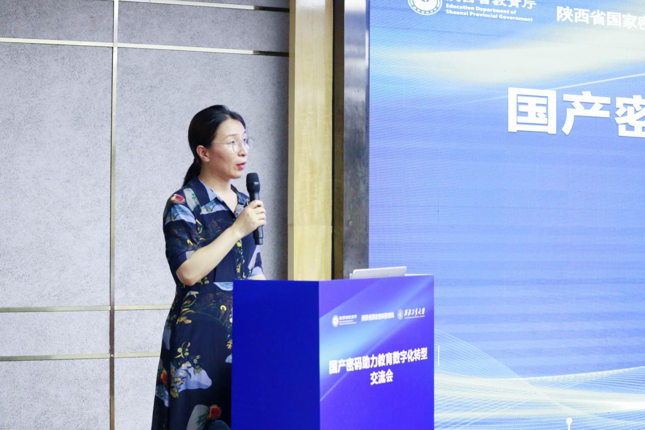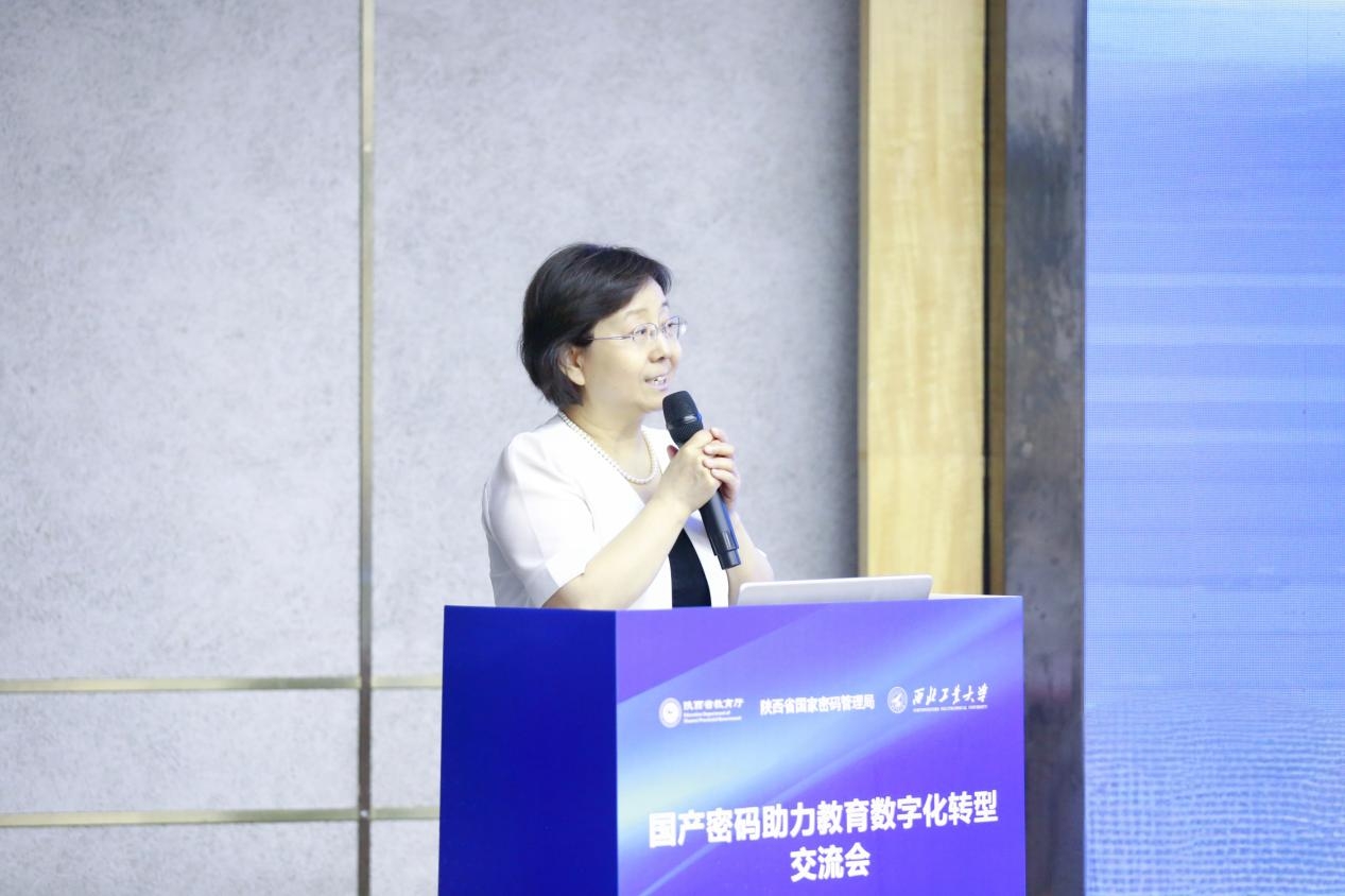 陕西省教育厅教育信息化处副处长刘贺英在会议上发表讲话,她表示,各高校要深入贯彻落实党的二十大精神及密码应用要求,全面提升教育信息系统的安全可靠,为数字校园建设筑牢安全基座。她特别肯定了西工大在国产密码应用上的积极探索和在教育行业里的引领示范,呼吁全省高校深入挖掘国产密码潜力,加强学习研究、深化国密改造,勇担时代重任,共同推动教育数字化转型高质量发展。