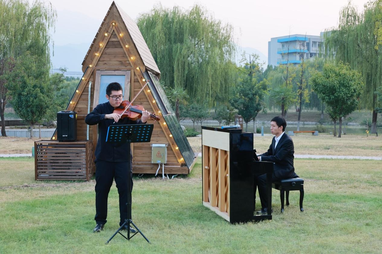 剪彩环节,领导们共同上台为钢琴木屋启用剪彩。随后,来自航天学院、航海学院、教育实验学院等学院的学生带来了钢琴独奏《朝向火焰》、合奏《练声曲》、四手联弹《匈牙利舞曲》第五首等曲目表演,现场气氛热烈,掌声不断。