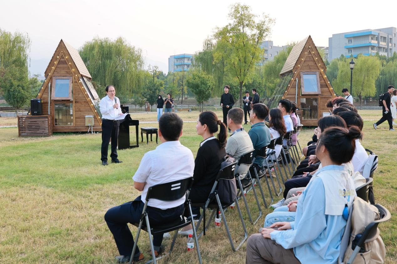 杨益新在致辞中表示,钢琴木屋的启用是学校深化美育改革,提升学生综合素质的重要举措。他希望钢琴木屋能够吸引更多的同学爱上钢琴、爱上音乐,成为大家体验美、创造美的艺术空间,通过实践提高自己的艺术素养。同时,钢琴木屋的建设是学校党委宣传部、党委保卫部、信息化管理处、后勤部办公室、后勤集团、艺术教育中心等部门通力配合的结果。作为学校实施“校园美育文化营造行动”的重要组成部分,经过数月的设计、建设,“钢琴校园规划”的6间钢琴木屋在启翔湖畔和通慧园正式启用,力求把美育融入校园生活全方位。