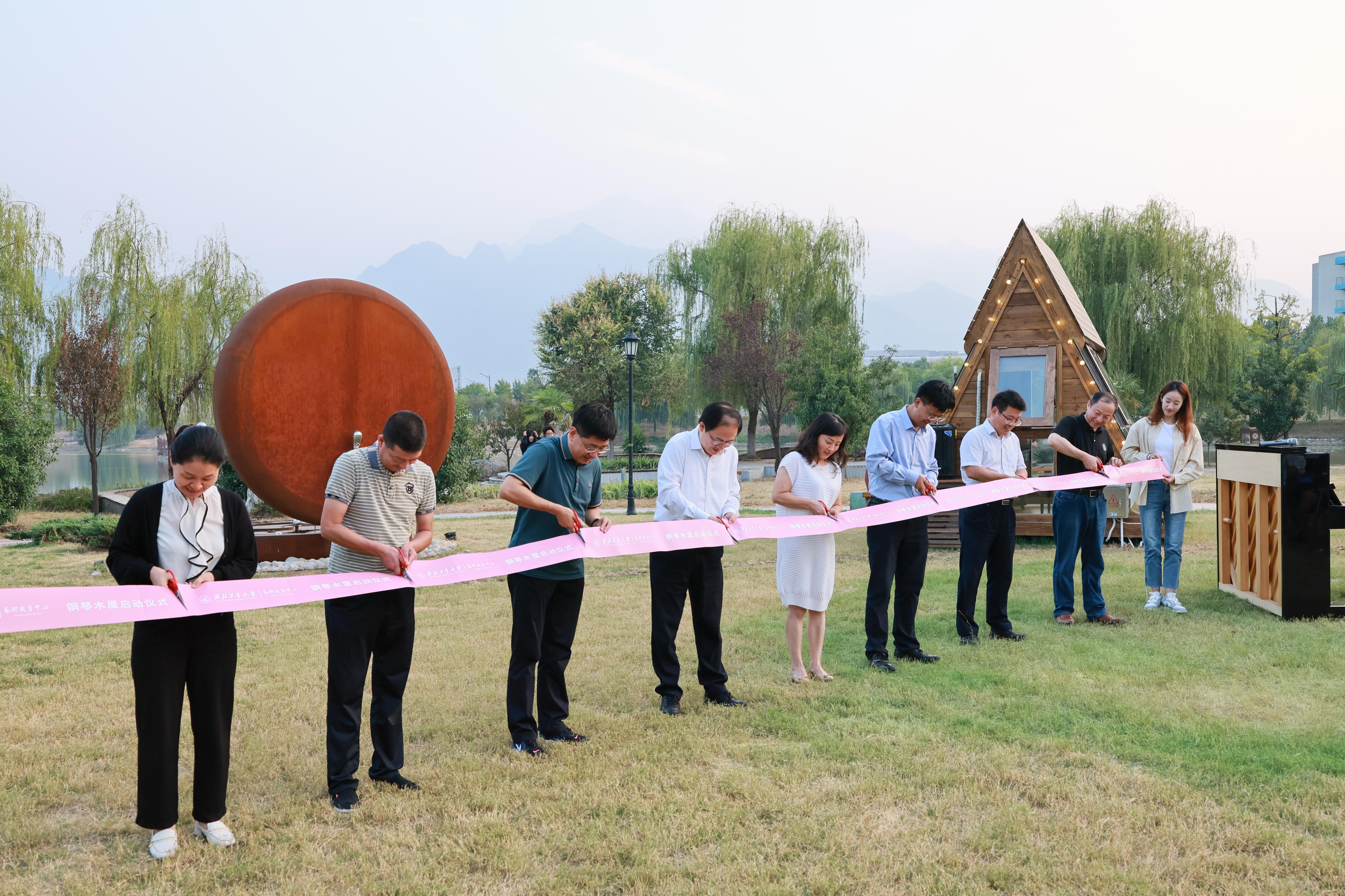 9月23日下午,长安校区钢琴木屋启用仪式在启翔湖畔隆重举行。党委常委、副校长、学校美育工作委员会主任杨益新,党委宣传部常务副部长张富利、信息化管理处处长薛静、党委保卫部副部长王坤庆、后勤部办公室副主任郝东兴、后勤集团党委副书记邱若娟、艺术教育中心主任张清江、艺术教育中心首席专家刘惠、艺术教育中心副主任初建杰、马玥及艺术教育中心老师、学生代表共同参加。
